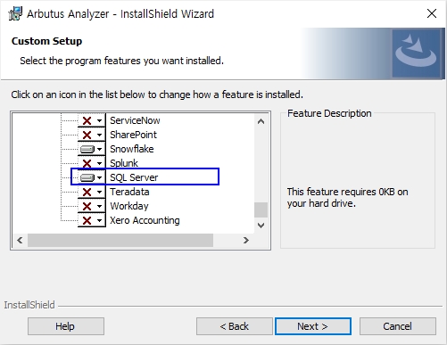 아래와 같이 Arbutus Analyzer 설치 과정 중에 필요한 데이터 커넥터를 선택할 수 있습니다.
