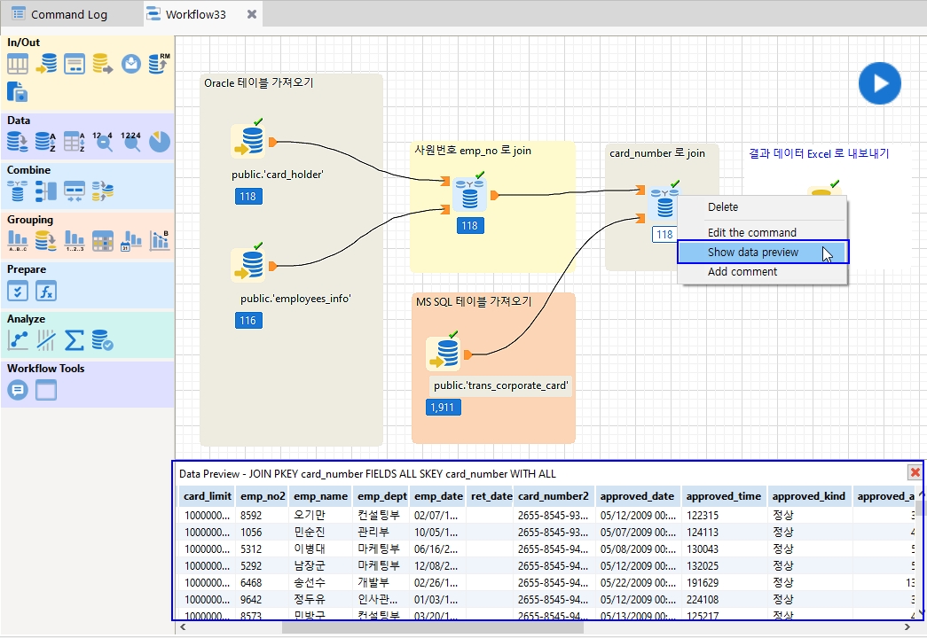 3. Workflow 데이터 미리 보기(Data Preview) - 개선된 기능